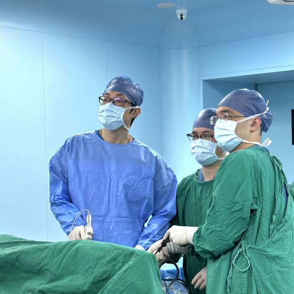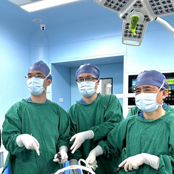 田毅峰教授(右一)行腹腔镜下肝癌切除术