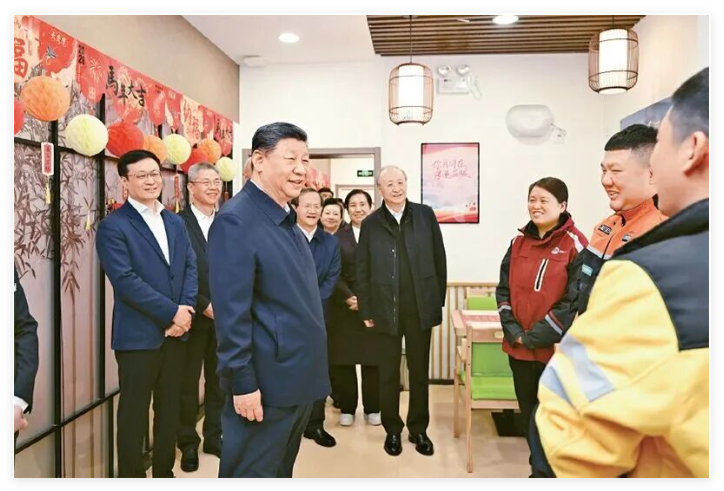 2026年2月9日至10日,中共中央总书记、国家主席、中央军委主席习近平在北京考察并看望慰问基层干部群众。这是10日上午,习近平在西城区新街口街道父母食堂考察时,同在这里休息的快递小哥亲切交流。 新华社记者 谢环驰/摄