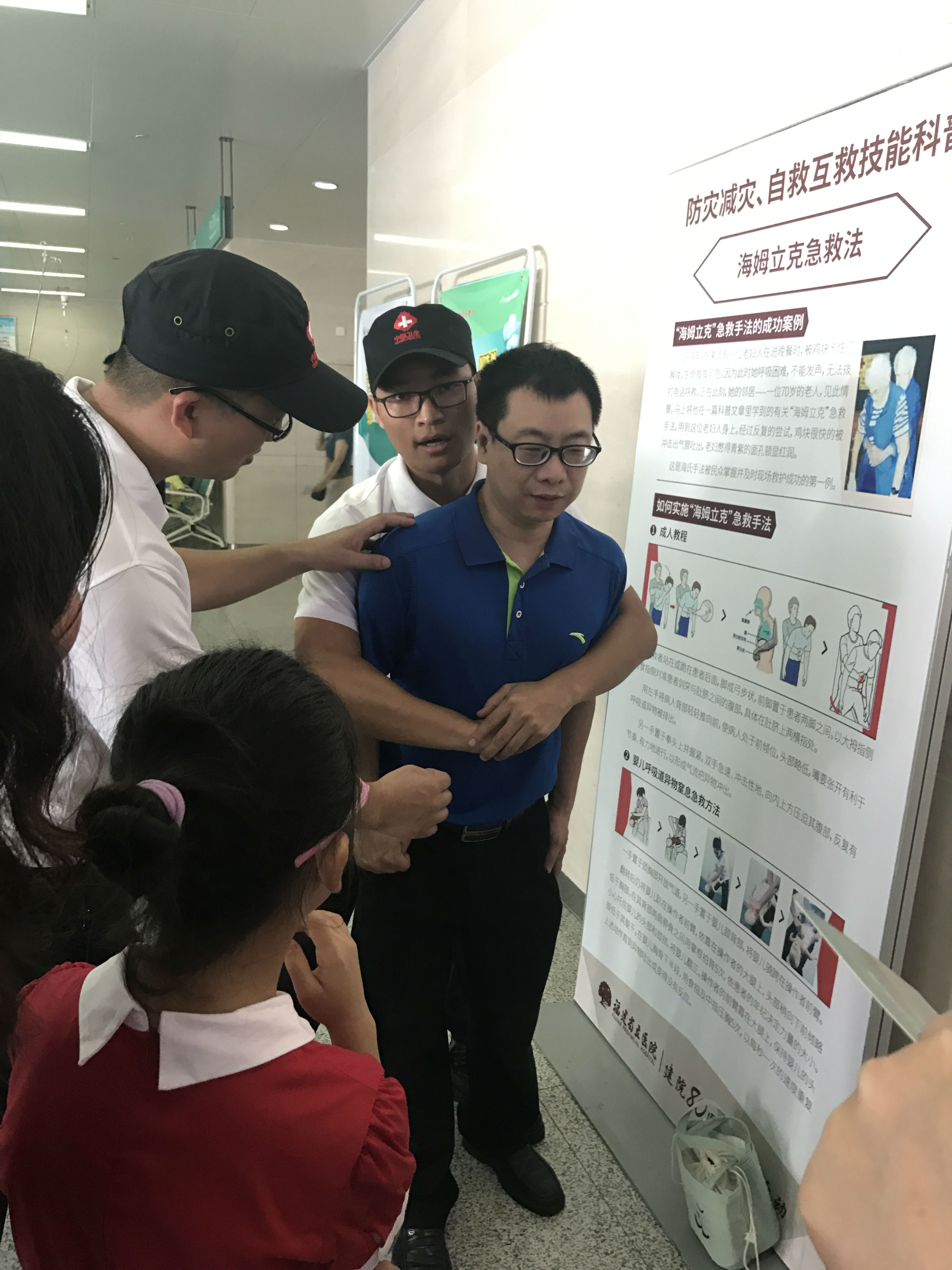 开放日期间,福建省立医院国家紧急医学救援队还为中小学生和市民开展了心肺复苏讲座与技能培训,防灾减灾知识的科普宣传,以及外伤救护常识和技能的培训等。大家在防灾减灾科普知识栏前认真浏览并专心听讲,了解各种自然灾害及突发意外伤害时,如何科学避险和自救互救,还不时向救援队员询问相关的问题;在外伤救护常识区,三位救援队员认真地介绍救援携行装备的组成及作用,演示在日常生活中遇到常见的外伤时,该如何正确包扎止血、固定和搬运伤员,并邀请大家参与外伤处置的技能操作。最受欢迎的是心肺复苏技能培训的现场,队员们手把手地教授心肺复苏的技能,不少家长带着孩子慕名而来参加培训,认真模仿,表现了对应急救护知识和技能的渴求。