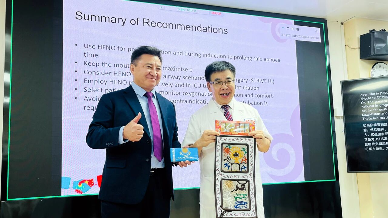 阿格扎姆·朱马季洛夫教授特意带来一幅象征“友谊长存”的哈萨克传统刺绣作品,赠予我院麻醉医学中心。这份跨越山水的礼物,不仅寄托着深厚情谊,也为本次学术盛会注入了浓郁的人文温度。